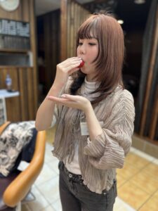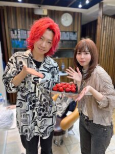 ​【どっちが赤い?】真っ赤なヘアと真っ赤なイチゴ🍓お客様からの愛が情熱レベル!